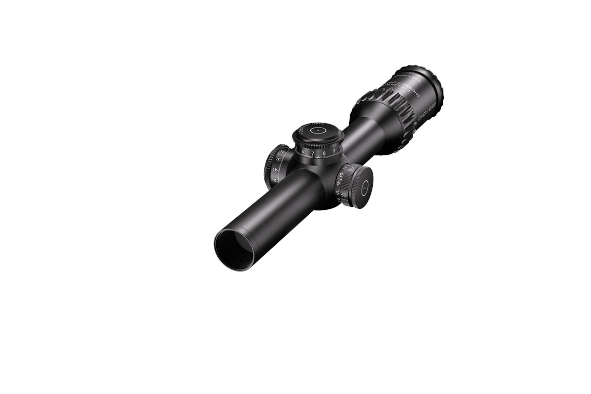 4060537045178 The 1‑8×24 PM II ShortDot Dual CC is a premium multipurpose riflescope designed to bridge ultra‑fast close‑quarters engagement and precision mid‑range shooting. With a full 1–8× magnification range, it integrates both a high‑visibility red‑dot sight for rapid acquisition and a tactical reticle for comprehensive zoom usage. Key Features and Highlights Dual focal plane system: Combines a daylight‑visible red dot in the second focal plane (SFP) with a tactical reticle in the first focal plane (FFP) for consistent hold‑points across the zoom range. Patented Close‑Combat Mode (CC‑Mode): When set at 1× magnification the parallax is fixed at approx. 7 m for true parallax‑free shooting at close range; above ~1.1× it transitions to ~100 m enabling accurate mid‑range engagement. Large exit pupil and generous eye relief: Optimized for fast, intuitive use in dynamic or static shooting scenarios—providing comfortable alignment whether standing, kneeling or prone. Compact and rugged design: With a 30 mm main tube diameter, length of approx. 293 mm and weight of approx. 635–650 g depending on configuration, this scope is built to handle extreme conditions—including low temperatures and high recoil/shock. High optical quality: Field of view spans roughly 35.3–4.9 m at 100 m across the zoom range, offering wide situational awareness at low magnification and refined detail at higher zoom. Precision mechanics: Turrets are ultra‑low profile, lockable, extremely durable and designed for exacting use in tactical or competition environments. Typical Specifications Magnification: 1–8× Focal Plane: Dual (1st and 2nd) Parallax: CC‑Mode ~7 m; Standard Mode ~100 m (optional up to ~300 m) Field of View: ~35.3–4.9 m @100 m Exit Pupil: ~9.8–3.0 mm Eye Relief: ~90 mm Tube Diameter: 30 mm Length: ~293 mm Weight: ~635–650 g