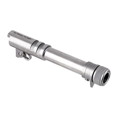 Il 1911 45 ACP SUPPRESSOR READY THREADED BARRELS di ED BROWN è identico al barilotto standard drop-in Ed Brown, ma con una lunghezza maggiore e filettato per l'uso con silenziatori. La dimensione della filettatura è 0.578 x 28 tpi RH.