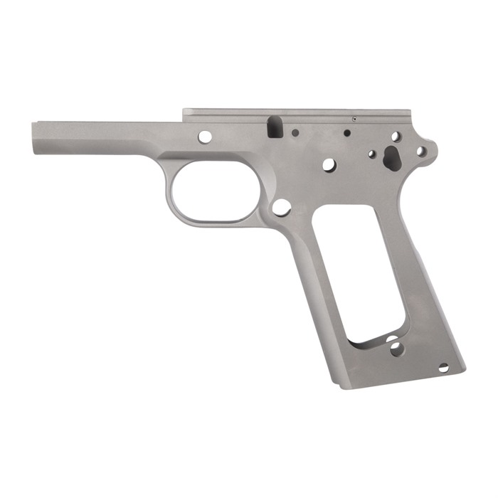 1911 GOVERNMENT MODEL FRAM Brownells is proud to introduce their BRN-1911 Government Model frame. Starting as a high-grade forging, each frame is precision machined to exacting specifications for exceptional fit and performance, making it a substantial step above cheap generic 1911 frames. An ideal foundation for any custom 1911, each Brownells BRN-1911 Government Model frame arrives ready for the slide, barrel, sights, and fire-control components of your choice to be fitted. All holes are drilled in one setup, allowing for more accurate alignment throughout. NOTE: Gunsmith fitting is required - a well-built 1911 ain’t no plug-n-play plastic pistol Standard Government Model (full-sized) single-stack frame Available in stainless steel .250" radius cuts for an extended beavertail safety FFL required for purchase Series 70 Each BRN-1911 1911 Government Model frame comes with a pre-cut .250" radius on the tang, ready for an extended Ed Brown style grip safety to protect the web of the shooter’s hand from the dreaded "hammer bite."