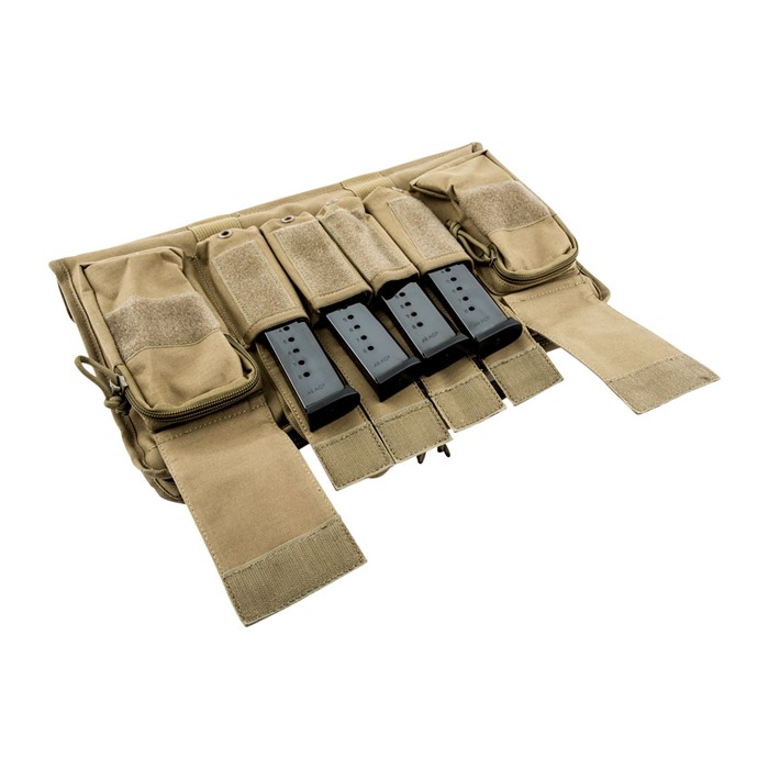 - Una tasca per i caricatori e una tasca multiuso, entrambe con coperture a patta