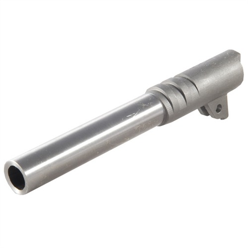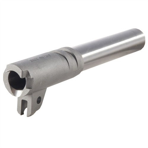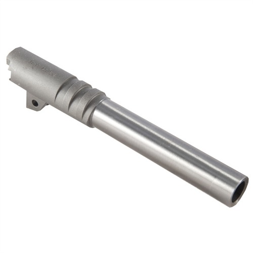 Forged from ordnance steel to strict, national match specs; rifled by a proprietary technique that holds lands and grooves to exceptionally close tolerances and leaves the surface finish mirror smooth. Air gauged to maintain .0002" tolerance through the bore. Feed ramps are throated for wadcutter ammo. Standard Barrel - Non-ramped, oversize hood, top and bottom lugs to achieve an exact fit for optimum match accuracy. Ramped Barrel - Fully supports the case head; gives direct feeding from magazine to chamber. Requires machining of frame. Gunsmithing fitting required. Std - Standard barrel, non-ramped. W/N - Wilson/Nowlin Ramp. C/P - Clark/Para Ordnance Ramp