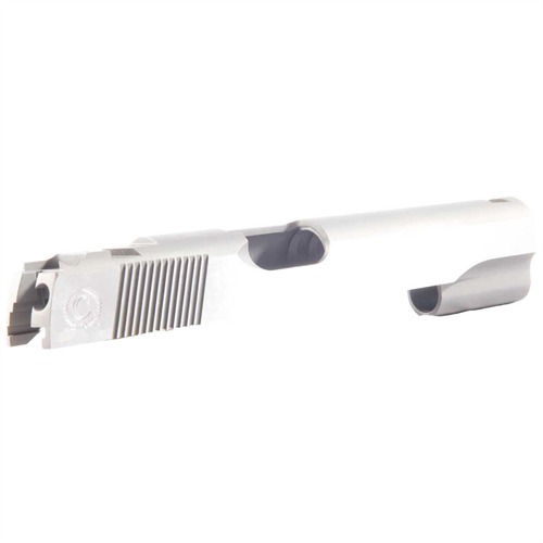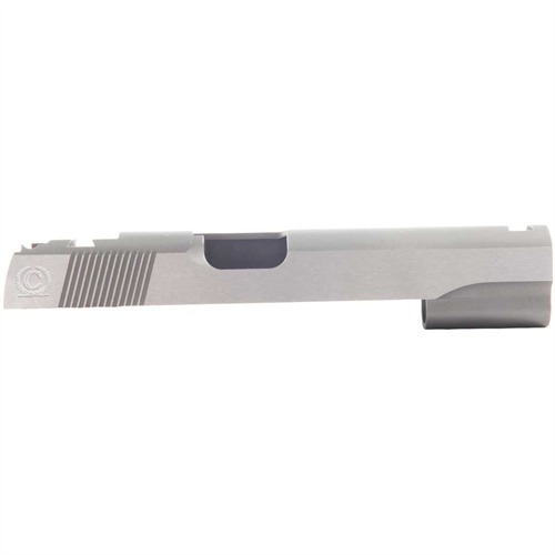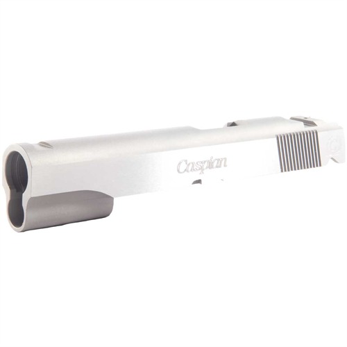 SPECS: 4340 carbon steel, in-the-white, or 416 stainless steel, natural finish. Government model accepts 5" barrel. Commander accepts 4.25" barrel. Officers model accepts 3.5" barrel. All Caspian slides require the use of a 9mm/.38 Super firing pin.