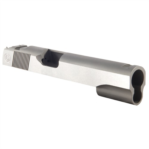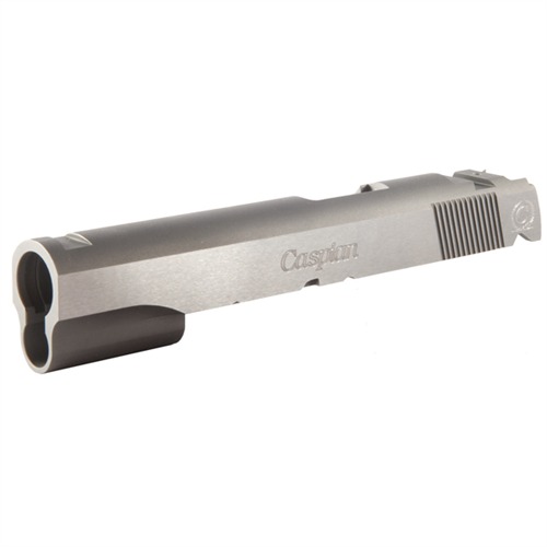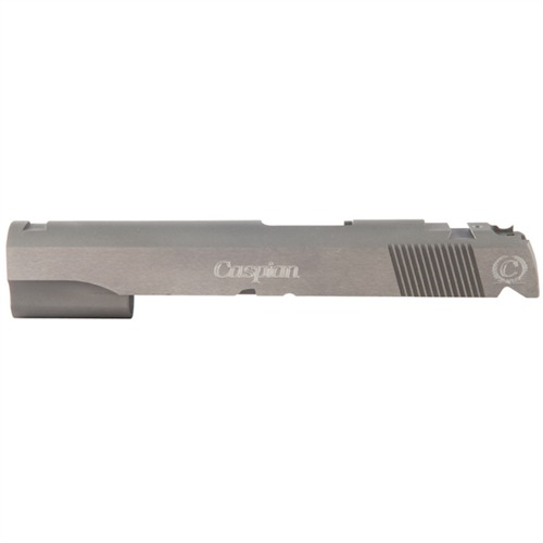 SPECS: 4340 carbon steel, in-the-white, or 416 stainless steel, natural finish. Government model accepts 5" barrel. Commander accepts 4.25" barrel. Officers model accepts 3.5" barrel. All Caspian slides require the use of a 9mm/.38 Super firing pin.