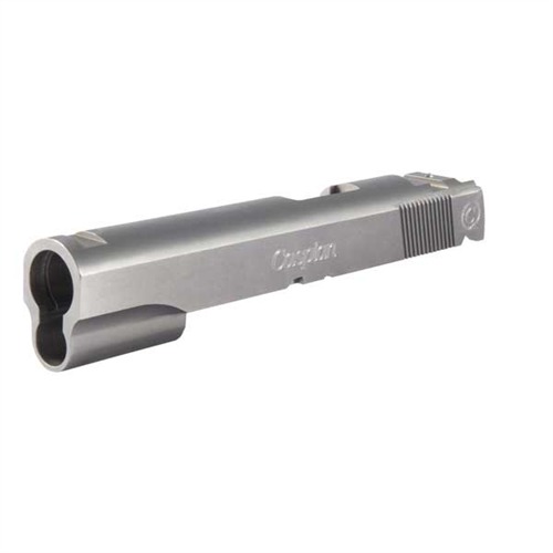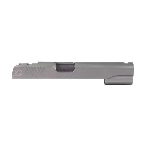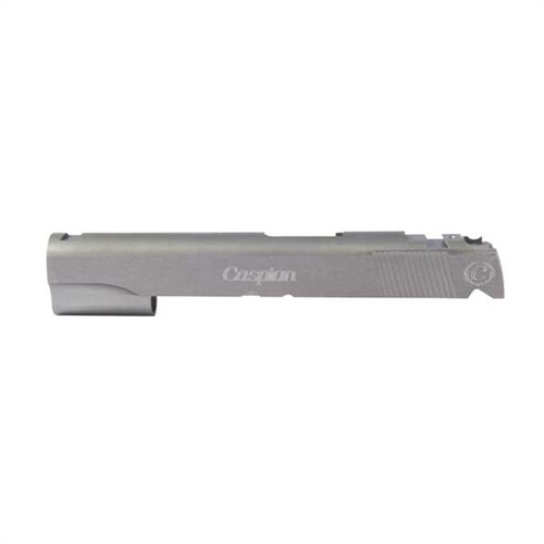 SPECS: 4340 carbon steel, in-the-white, or 416 stainless steel, natural finish. Government model accepts 5" barrel. Commander accepts 4.25" barrel. Officers model accepts 3.5" barrel. All Caspian slides require the use of a 9mm/.38 Super firing pin.