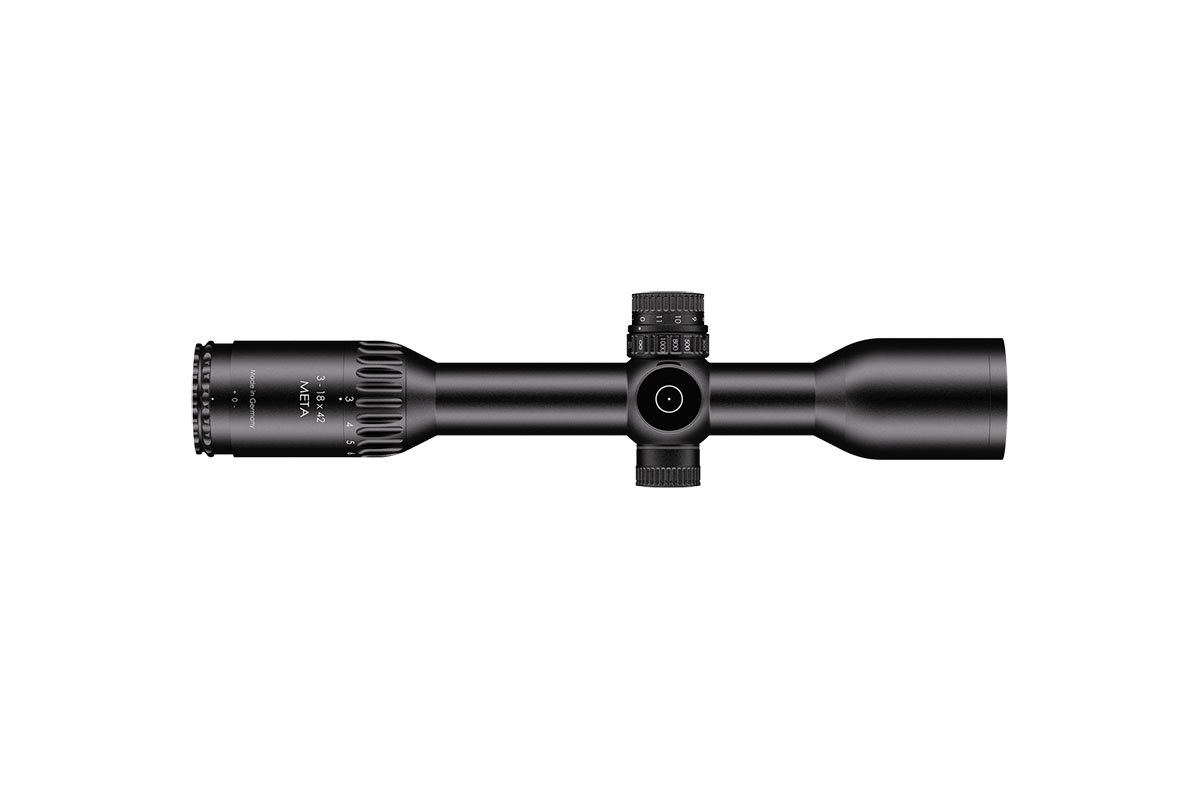 4060537066449 The 3-18x42 Meta combines exceptional optical clarity with powerful performance, delivering a premium shooting experience for both hunters and precision marksmen. Its wide field of view, paired with the LP7 reticle featuring an illuminated red dot, provides superior situational awareness and lightning-fast target acquisition. Unmatched precision is achieved through patented Zero Deviation Technology, a parallax adjustment starting from 20 m, and a generous internal adjustment range, ensuring consistent accuracy even at long distances. For enhanced mounting flexibility, the 3-18x42 Meta features the innovative “LPI” system – an illumination control integrated into the parallax adjustment turret. This smart design improves ergonomics and handling, offering smooth operation for both right- and left-handed shooters. The slim, streamlined construction of the scope makes it perfectly compatible with clip-on devices, while the reinforced ocular ring allows secure attachment of dust covers or add-on optics. With its blend of cutting-edge technology, robust build quality, and refined usability, the 3-18x42 Meta stands as a true symbol of precision engineering — designed to deliver reliability, adaptability, and clarity in every shooting scenario.