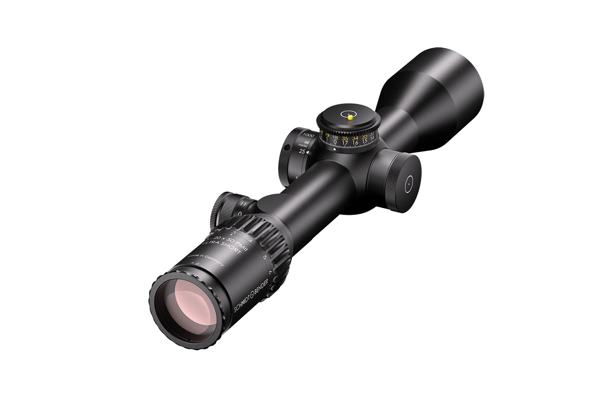 4060537064476 The 3‑20×50 PM II Ultra Short from Schmidt and Bender is a compact yet powerful riflescope engineered for high-performance engagements across medium to long distances. With its 3–20× magnification range and a 50 mm objective lens, it offers outstanding optical clarity and flexibility in a streamlined form factor. Constructed around a robust 34 mm main tube, it maintains a length of approximately 340 mm and weighs around 900 g, striking an excellent balance between size and performance—ideal for mounting on compact platforms without compromising optics. Its field of view spans roughly 13.0–2.1 m at 100 m, providing broad situational awareness at lower magnification and refined detail at the high end. The exit pupil ranges around 11.4–2.5 mm, and the eye relief is approximately 90 mm, supporting comfortable shooting in varied positions while maintaining strong light-gathering even as light fades. Advanced features include first focal plane (FFP) illuminated reticle options, side parallax adjustment (from approx. 25 m to infinity), and a low-profile elevation turret optimized for tactical precision. Key Specifications: Magnification: 3–20× Objective Lens Diameter: 50 mm Main Tube Diameter: 34 mm Field of View: approx. 13.0–2.1 m @100 m Exit Pupil: approx. 11.4–2.5 mm Eye Relief: approx. 90 mm Length: approx. 340 mm Weight: approx. 900 g With precision optics, compact build, and rugged mechanical design, the 3‑20×50 PM II Ultra Short is built for serious shooters who demand premium performance in a versatile package.