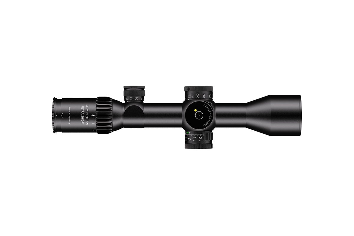 4060537063370 The 3‑20×50 PM II Ultra Short from Schmidt and Bender is a compact yet powerful riflescope engineered for high-performance engagements across medium to long distances. With its 3–20× magnification range and a 50 mm objective lens, it offers outstanding optical clarity and flexibility in a streamlined form factor. Constructed around a robust 34 mm main tube, it maintains a length of approximately 340 mm and weighs around 900 g, striking an excellent balance between size and performance—ideal for mounting on compact platforms without compromising optics. Its field of view spans roughly 13.0–2.1 m at 100 m, providing broad situational awareness at lower magnification and refined detail at the high end. The exit pupil ranges around 11.4–2.5 mm, and the eye relief is approximately 90 mm, supporting comfortable shooting in varied positions while maintaining strong light-gathering even as light fades. Advanced features include first focal plane (FFP) illuminated reticle options, side parallax adjustment (from approx. 25 m to infinity), and a low-profile elevation turret optimized for tactical precision. Key Specifications: Magnification: 3–20× Objective Lens Diameter: 50 mm Main Tube Diameter: 34 mm Field of View: approx. 13.0–2.1 m @100 m Exit Pupil: approx. 11.4–2.5 mm Eye Relief: approx. 90 mm Length: approx. 340 mm Weight: approx. 900 g With precision optics, compact build, and rugged mechanical design, the 3‑20×50 PM II Ultra Short is built for serious shooters who demand premium performance in a versatile package.