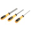 RAMRODZ INC. DIAMOND-COATED FLEXIBLE FLAT FILE ASSORTMENT 3 PACK The RamRodz Inc. 3-Piece Flat File Assortment is a versatile set designed to meet the diverse filing needs of gunsmiths and metalworkers. This assortment provides a range of file sizes and cuts, making it suitable for various tasks, from coarse material removal to fine finishing touches. Description and Features: This set includes three flat files, each varying in size and cut to accommodate different applications. The files are crafted from high-quality materials, ensuring durability and longevity even under rigorous use. Their ergonomic handles provide a comfortable grip, enhancing control and precision during detailed work. The assortment allows users to select the appropriate file for specific tasks, improving efficiency and outcomes in gunsmithing projects. Specifications: Number of Files: 3 Small: 6mm Wide Medium: 9mm Wide Large: 15mm Wide File Types: Flat Material: High-quality steel Handle: Ergonomic design for comfortable grip Customer Insights: Customers of the RamRodz Inc. 3-Piece Flat File Assortment appreciate the variety of file sizes and cuts included in the set, noting that it effectively meets a wide range of filing needs. The durability of the files is frequently highlighted, with customers reporting that they maintain their sharpness and effectiveness over time. The ergonomic handles are also praised for providing a comfortable and secure grip, reducing hand fatigue during extended use. Incorporating the RamRodz Inc. 3-Piece Flat File Assortment into your toolkit ensures you have the appropriate tools for various filing tasks, enhancing the quality and precision of your gunsmithing and metalworking projects.