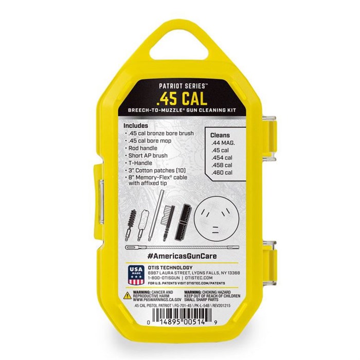 Il PATRIOT Series di Otis offre l'attrezzatura fondamentale per la manutenzione delle armi, per una pulizia efficace da Breech-to-Muzzle®. Questo kit include: