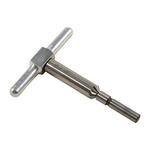 Il cutter di smussatura a 45° rompe i bordi delle rigature per un'uscita pulita del proiettile o smussa le bocche delle camere del cilindro del revolver per ricariche rapide. Include il cutter, un manico e un pilota, il tutto in una scatola in polipropilene. Il pilota intercambiabile mantiene il cutter correttamente allineato. Acquista piloti extra per utilizzare un cutter su molti calibri diversi. Piloti per altri calibri disponibili separatamente. Il cutter a 45° fornito nei set contrassegnati con un * ha un diametro di 5/8" per smussare correttamente le bocche dei cilindri e delle canne più grandi su quei calibri. Tutti gli altri set hanno un cutter a 45° con un diametro di ½".