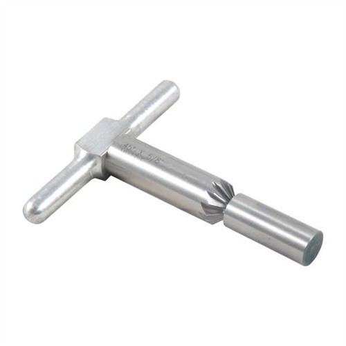 Il cutter per smussare a 45° rompe i bordi delle righe di rigatura per un'uscita pulita del proiettile o smussa le bocche delle camere dei cilindri delle revolver per ricariche rapide. Include il cutter, un manico e un pilota, il tutto in una scatola in polipropilene. Il pilota intercambiabile mantiene il cutter correttamente allineato. Acquista piloti extra per utilizzare un cutter per molti calibri diversi. I piloti per altri calibri sono disponibili separatamente. Il cutter a 45° fornito nei set contrassegnati con un * ha un diametro di 5/8" per smussare correttamente le bocche dei cilindri e dei fucili più grandi su quei calibri. Tutti gli altri set hanno un cutter a 45° con un diametro di ½".