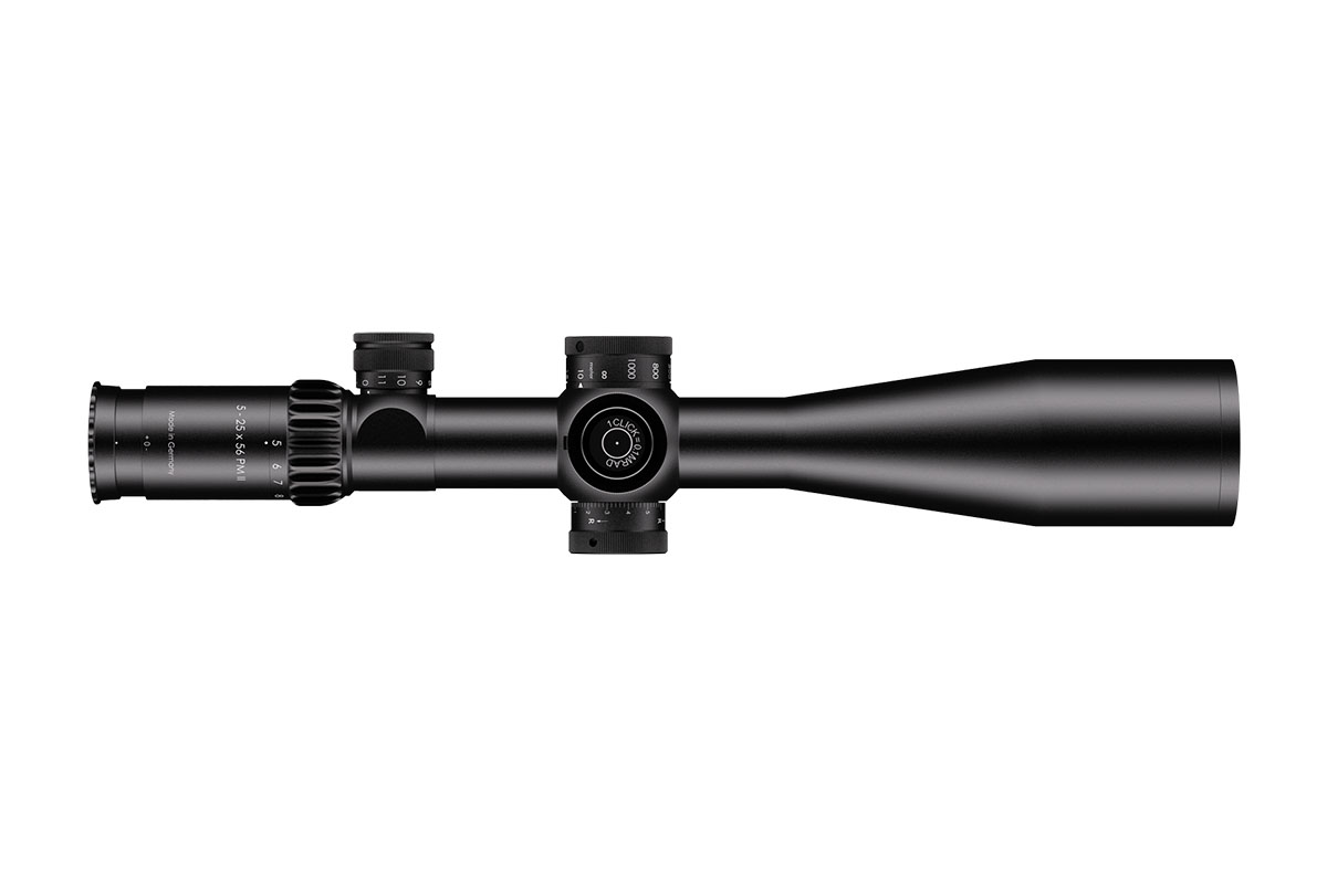 4060537065206 The 5‑25×56 PM II from Schmidt and Bender stands at the pinnacle of variable‑magnification tactical optics, engineered for long‑range precision, outstanding clarity and professional‑level reliability. With a wide 5–25× zoom range and a substantial 56 mm objective lens, it delivers exceptional light‑gathering capability, enabling crisp, bright imagery even at extended distances. Built upon a rugged 34 mm main tube, the scope accommodates large internal adjustment ranges and is designed for demanding use. It features a reticle in the first focal plane (FFP) so that scale and hold‑offs remain accurate at any magnification. The field of view spans approximately 5.3–1.5 m at 100 m, while the exit pupil ranges around 11.0–2.3 mm, and the eye relief remains generous at around 90 mm. The parallax adjustment typically extends from 10 m to infinity, enabling accurate focus from very close ranges through to extreme distances. The turret system is engineered for precision: click values as fine as 0.1 mrad (≈1 cm at 100 m) are available, and a double‑turn elevation turret combined with single‑turn windage allows vast usable correction ranges for wind and elevation. Optical transmission exceeds 90 %, and the construction is nitrogen‑filled, fog‑ and waterproof, ensuring full reliability in all climatic conditions. Key Specifications: Magnification: 5–25× Objective Lens Diameter: 56 mm Main Tube Diameter: 34 mm Field of View: approx. 5.3–1.5 m @100 m Exit Pupil: approx. 11.0–2.3 mm Eye Relief: approx. 90 mm Parallax Adjustment: from ~10 m to infinity Click Value: approx. 0.1 mrad (≈1 cm at 100 m) Optical Transmission: > 90 % Crafted in Germany to the highest standards, the 5‑25×56 PM II is the go‑to choice for military, law‑enforcement and competition shooters who demand absolute clarity, mechanical integrity and extreme flexibility in one optic.