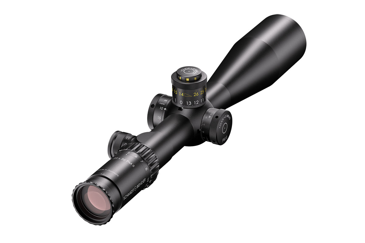 4060537065220 The 5‑25×56 PM II from Schmidt and Bender stands at the pinnacle of variable‑magnification tactical optics, engineered for long‑range precision, outstanding clarity and professional‑level reliability. With a wide 5–25× zoom range and a substantial 56 mm objective lens, it delivers exceptional light‑gathering capability, enabling crisp, bright imagery even at extended distances. Built upon a rugged 34 mm main tube, the scope accommodates large internal adjustment ranges and is designed for demanding use. It features a reticle in the first focal plane (FFP) so that scale and hold‑offs remain accurate at any magnification. The field of view spans approximately 5.3–1.5 m at 100 m, while the exit pupil ranges around 11.0–2.3 mm, and the eye relief remains generous at around 90 mm. The parallax adjustment typically extends from 10 m to infinity, enabling accurate focus from very close ranges through to extreme distances. The turret system is engineered for precision: click values as fine as 0.1 mrad (≈1 cm at 100 m) are available, and a double‑turn elevation turret combined with single‑turn windage allows vast usable correction ranges for wind and elevation. Optical transmission exceeds 90 %, and the construction is nitrogen‑filled, fog‑ and waterproof, ensuring full reliability in all climatic conditions. Key Specifications: Magnification: 5–25× Objective Lens Diameter: 56 mm Main Tube Diameter: 34 mm Field of View: approx. 5.3–1.5 m @100 m Exit Pupil: approx. 11.0–2.3 mm Eye Relief: approx. 90 mm Parallax Adjustment: from ~10 m to infinity Click Value: approx. 0.1 mrad (≈1 cm at 100 m) Optical Transmission: > 90 % Crafted in Germany to the highest standards, the 5‑25×56 PM II is the go‑to choice for military, law‑enforcement and competition shooters who demand absolute clarity, mechanical integrity and extreme flexibility in one optic.