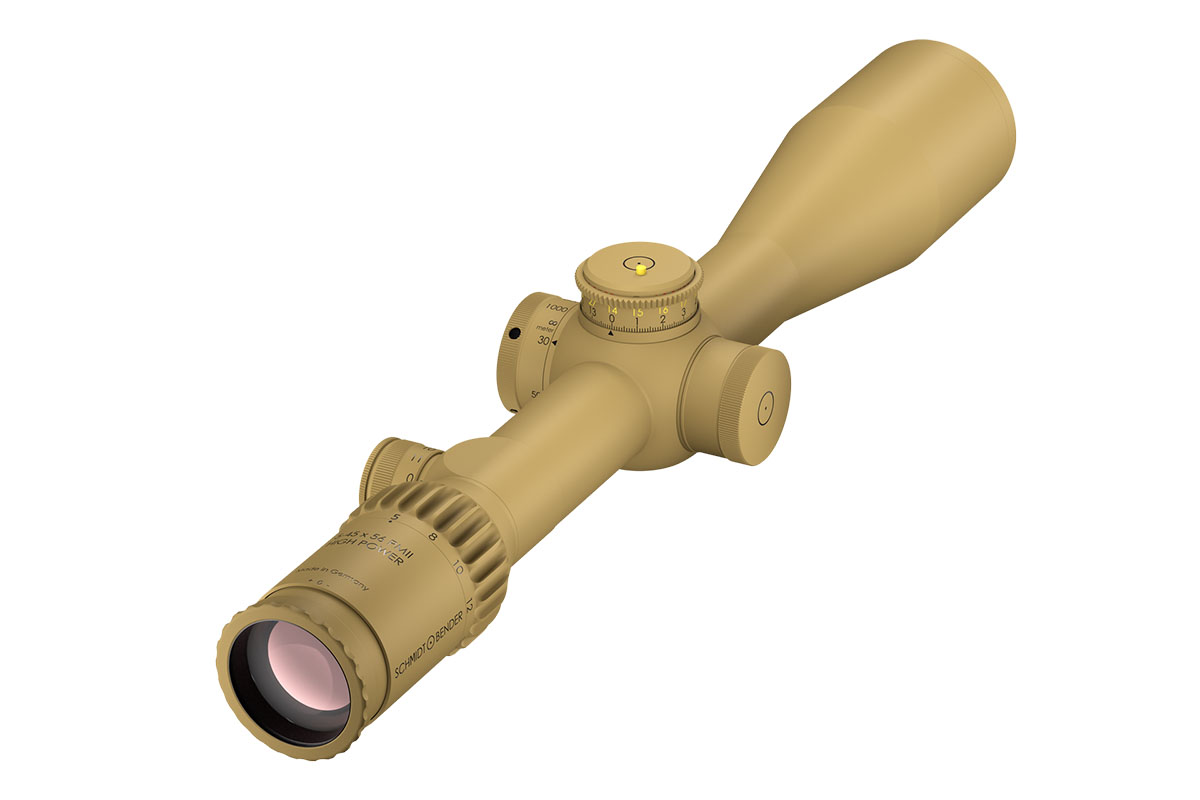 Engineered for extreme clarity and reach, the 56 mm objective delivers excellent light gathering while the optical system maintains a large usable field of view across the entire zoom range — allowing fast situational awareness at low magnification and razor‑sharp detail at high power. The reticle sits in the first focal plane, so hold‑offs and subtensions remain precise at any magnification. The model features robust, lockable turrets with fine 0.1 mrad click values and very large usable internal adjustment ranges tailored for extreme‑range correction.