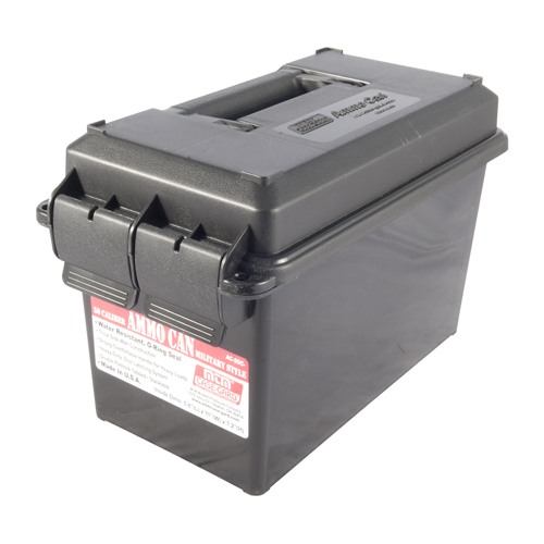 Model: 50 Caliber Can MTM ammo cans are a great way to store bulk or boxed ammo. Its all-plastic design is lighter in weight than the 50 caliber US Military Surplus Ammo Can. Transferring ammo to and from the range, just became a little easier! Ideal for ammo storage. Molded out of rugged polypropylene plastic, these comfortably handled ammo cans will hold up to some pretty harsh treatment. Utilizing MTM's tongue and groove O-Ring seal system for a superior water-resistant seal, the 50 cal can is designed to fit the same amount of bulk ammo storage as the original. A heavy-duty dual latching system makes for a better seal and less likely to open accidentally. Double padlock tabs along with molded-in stacking ridges, make these solid containers the perfect solution to so many storage needs. Cartridge Capacity 1200rds of 5.56 1750rds of .40SW 250rds of 12ga 2.75 640rds of .308 1300rds of .45ACP 2200rds of 9mm Specs Inside Dim: 5.8”(L) x 11.0”(W) x 7.2”(H) Outside Dim: 7.4”(L) x 13.5”(W) x 8.5”(H) Model: Multi-Caliber Can Close in size to the Big 50 Cal Ammon box, this O-Ring sealed ammo can offers the perfect solution to so many storage needs. Made to carry anything from bulk ammo to decoy weights to pet food. Our Ammo Can easily handles 30 pounds of gear in an easy to transport package. It provides excellent, water resistant protection along with extraordinary durability. Molded out of rugged polypropylene plastic and has a comfortably handle holds up to some pretty rough treatment. The Ammo Can offers a heavy-duty dual latches for better sealing, double padlock tabs and molded-in stacking ridges for slip resistant stacking. Great for protection in basements, garages or storage sheds. The ammo can does not have a tray on the inside. Inside Dimensions: 7.3”(L) x 12.5”(W) x 7.3”(H) Inside space of 707 cubic inches Outside Dimensions: 9.3”(L) x 15.3”(W) x 8.8”(H)