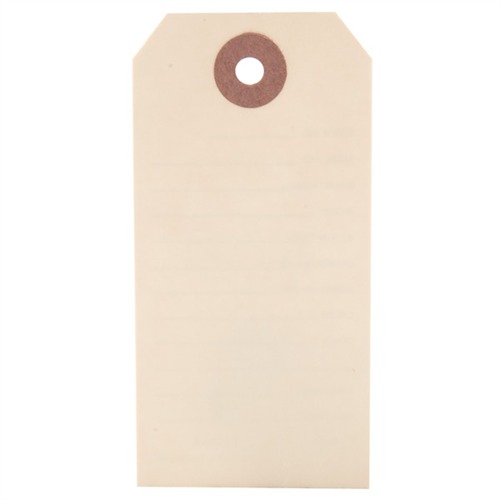 Dimensioni: 3-3/4" (9.5cm) x 1-7/8" (4.8cm). Foro rinforzato da 1/4" (6.3mm) per il legame del tag. Realizzati in cartoncino pesante. Disponibili in manilla, blu chiaro e giallo.