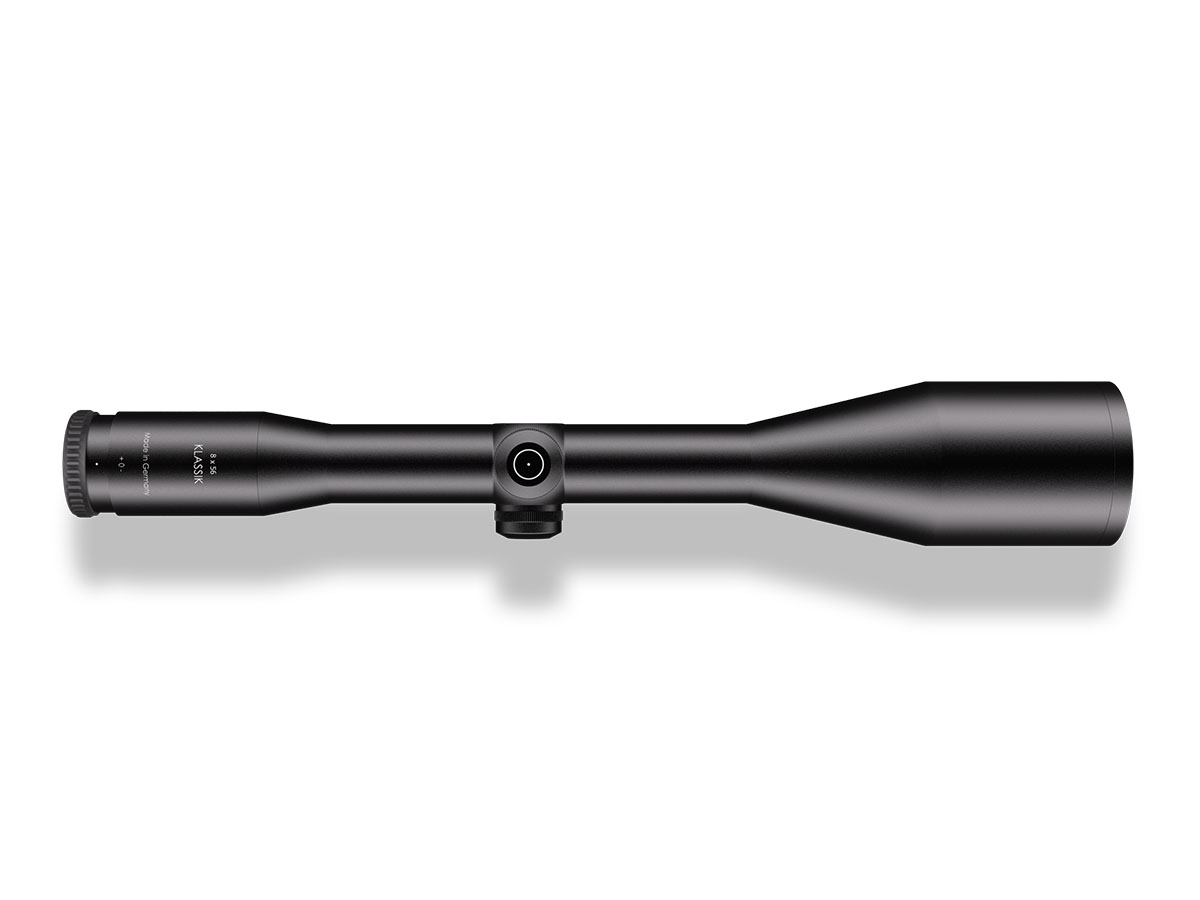 4060537016680 The 8×56 Klassik embodies reliability and simplicity in a premium fixed‑power riflescope. With its 56 mm objective lens, it delivers exceptional light-gathering capability, producing bright, high-contrast images even under challenging lighting conditions. Its fixed 8× magnification makes it the only fixed-power scope in the premium class, providing consistent performance without compromise. Ideal for tasks such as fox hunting from a feeding station or traditional driven hunts, the 8×56 Klassik allows precise adjustments in both elevation and windage thanks to its generous adjustment range. Its robust, weatherproof housing ensures the scope can withstand the harshest conditions while maintaining accuracy and dependability. Key Features: Fixed Magnification: 8× Objective Lens Diameter: 56 mm Exceptional light transmission for low-light conditions Large elevation and windage adjustment range Weatherproof, rugged construction Premium German craftsmanship For hunters who value tradition, experience, and uncompromising accuracy, the 8×56 Klassik is the ultimate expression of a reliable, precise riflescope.