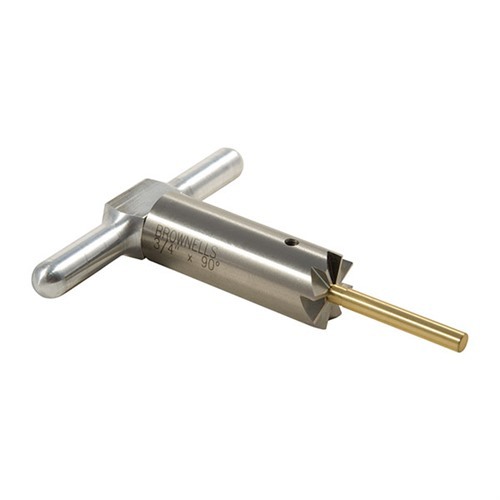 Il 90° MUZZLE FACING CUTTER & BRASS PILOT è uno strumento essenziale per ogni appassionato di armi. Questo cutter di facciata in acciaio temprato permette di squadrate un musetto dopo l'accorciamento o di riparare ammaccature e danni.