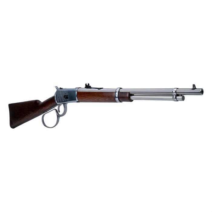 No rifle does classic American styling and swift, light handling like the legendary 92. The Heritage 92 combines a traditional hardwood stock with blued or Stainless finish to deliver a big-bore rifle suitable for the backwoods or the back forty. Adjustable rear buckhorn sight, an elegant classic wood profile, and an exquisitely smooth-cycling action prove that contemporary engineering can pair seamlessly with time-honored craftsmanship and design. SPECIFICATIONS: Caliber: 357 Magnum Capacity: 8 or 10 Rounds Front Sight: Drift Adjustable Rear Sight: Adjustable Buckhorn Action Type: Lever Action Barrel Length: 16.50 - 20.00 In. Overall Length: 33.70 - 37.20 In. Overall Height: 7.80 In. Overall Width: 1.50 In. Overall Weight: 89.20 – 95.40 Oz. (Unloaded) Twist Rate: 1:30-in RH Twist Grooves: 6 Stock Material: Wood Frame Material: Alloy Steel / Stainless Steel Barrel Material: Alloy Steel / Stainless Steel Safety: Thumb Safety