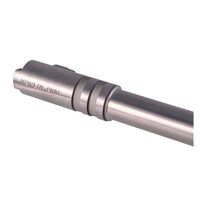 SPECS: 416 stainless steel, hardened to Rc 40. Over- size hood and feet require gunsmith fitting. Available in 5” (12.7cm) and 6” (15.2cm) lengths. All models .581” (14.7mm) O.D. Nowlin/Wilson ramped barrel.