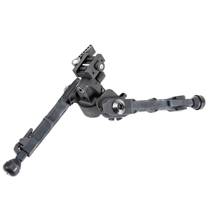 ACCU-TAC PC-4 BIPODS The Accu-Tac PC-4 bipod was designed, engineered, and manufactured in the USA. This PC bipod is perfect for tactical, target, competition, and airgun shooting. This is only a suggested use, this model is not exclusive for these applications. The PC-4 is 100% billet, made from the highest quality aircraft aluminum available. This model has the versatility you want in a bipod with its 4 individual leg positions and 5 notch height options. It also has the ability to pan as well as cant, which can each be locked and secured individually with the adjustable lever. To engage or adjust leg position, simply pull the spring-loaded leg downward to move each leg independently. Leg position can be deployed to 90° or 45°, locking securely into 4 positions. Please keep in mind the cant adjustment lever can be repositioned, DO NOT use a tool to tighten the canting tension. All are black with anodized finish. Choose: Model PCB-0400 Quick Detach for Picatinny rail mount that is quick, and very secure, it attaches to a 1913 Picatinny rail and mounts in seconds without need for extra tools for tightening. Model PCASQD-0400 Quick Detach for Arca Swiss or Arca Style rail, mounts in seconds without the need to use extra tools for tightening. Model PCB-0400 QD for Picatinny Rail Specs Min. Height (Legs at 45°) 6.25"" / 158.75 mm Min. Height (Legs at 90°) 7.75"" / 196.85 mm Max. Height (Legs at 90°) 9.125” / 231.775 mm Min. Stance (Legs at 45°) 9.0” / 228.6 mm Max. Stance (Legs at 90°) 11.0"" / 279.4 mm Closed Position Width 4.250"" / 107.95 mm Closed Position Length 7.5” / 190.5 mm Weight 26.96 oz Model PCASQD-0400 Arca Spec Quick Detach Specs Min. Height (Legs at 45°) 6.50"" / 165.10 mm Min. Height (Legs at 90°) 8.00"" / 203.2 mm Max. Height (Legs at 90°) 9.150” / 232.41 mm Min. Stance (Legs at 45°) 9.0” / 228.6 mm Max. Stance (Legs at 90°) 11.0"" / 279.4 mm Closed Position Width 4.250"" / 107.95 mm Closed Position Length 7.5” / 190.5 mm Weight 27.92 oz"