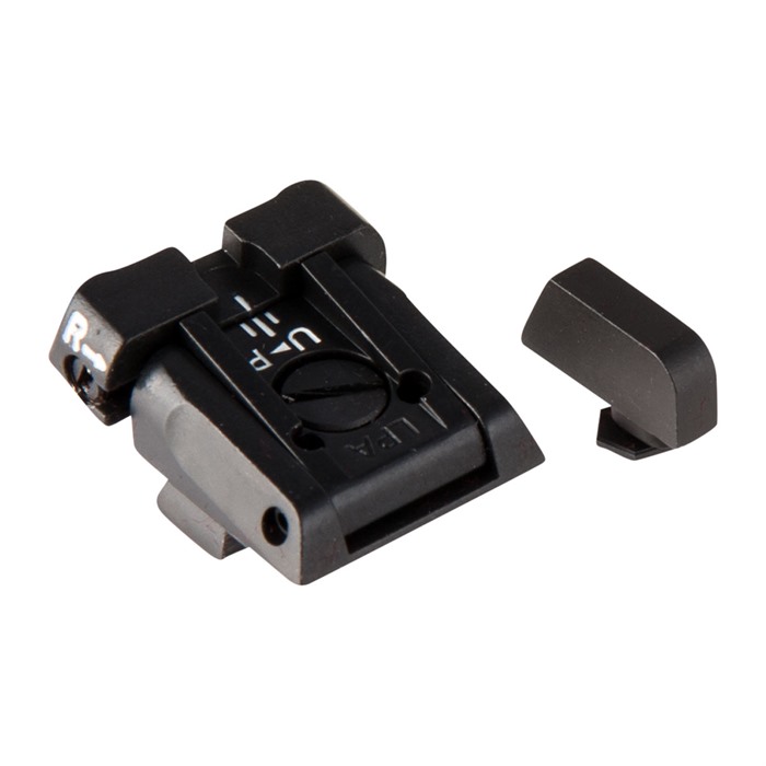 Il mirino posteriore incluso con i Mirini Regolabili LPA è costruito con un design a profilo basso che facilita il riposizionamento nella fondina, e la coppia di mirini offre un'ottima opzione per tutto, dal tiro a segno all'uso per autodifesa.