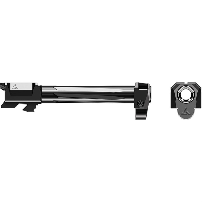 RADIAN WEAPONS AFTERBURNER + RAMJET FOR GLOCK 17 GEN 3® The Radian® AFTERBURNER™ + RAMJET™ combo provide unprecedented recoil reduction and match grade accuracy in a concealed carry package. The threadless barrel design allows for effortless install/removal for cleaning, while LEGAL FOR SALE IN ALL 50 STATES*. The AFTERBURNER™ compensator is machined from stainless steel and the RAMJET™ barrel from hardened 416R SS; both are enhanced with a Radianite™ coating. This combination achieves low friction, high hardness, and high corrosion resistance, making overall durability and erosion from muzzle blast a non-issue. Angled front faces on the AFTERBURNER aid in holstering. The INTRA-LOK® mounting system uses the taper lock principle; a tapered locking screw interfaces with an angled V-groove on the underside of the barrel. This perfectly times the compensator as it locks down onto the upper barrel profile on the muzzle end of the barrel. INTRA-LOK® allows the user to simply slide the compensator over the barrel, insert and tighten the locking screw, making for a simple and repeatable installation process. This system allows the user to easily remove the barrel from the slide for cleaning. DISCLAIMER: “GLOCK” is a federally registered trademark of GLOCK, Inc. and is one of many trademarks owned by GLOCK, Inc. or GLOCK Ges.m.b.H. Neither Brownells nor this site are affiliated in any manner with, or otherwise endorsed by, GLOCK, Inc. or GLOCK Ges.m.b.H. The use of “GLOCK” on this page is merely to advertise the sale of GLOCK pistols, parts, or components. For genuine GLOCK, Inc. and GLOCK Ges.m.b.H. products and parts visit www.glock.com.