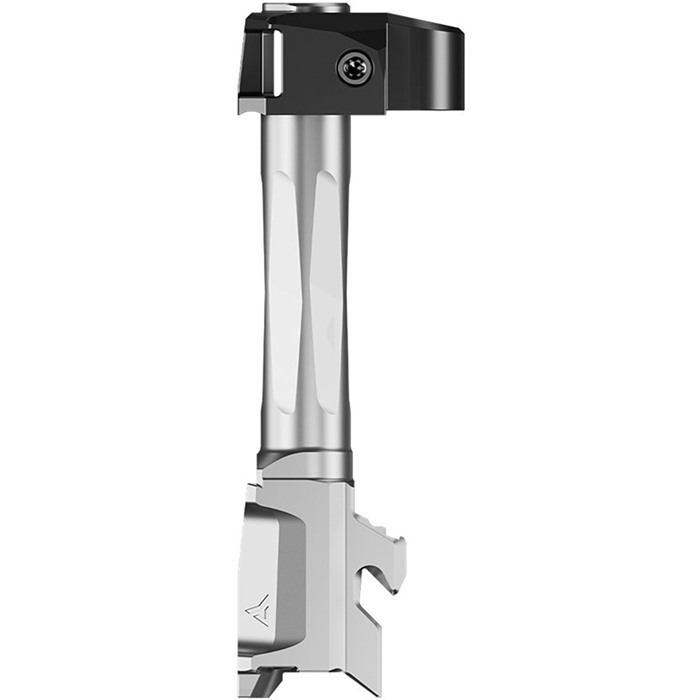 AFTERBURNER + RAMJET FOR GLOCK 43 The Radian® AFTERBURNER™ + RAMJET™ combo provide unprecedented recoil reduction and match grade accuracy in a concealed carry package. The threadless barrel design allows for effortless install/removal for cleaning, while LEGAL FOR SALE IN ALL 50 STATES*. The AFTERBURNER™ compensator is machined from hardened stainless steel and the RAMJET™ barrel from hardened 416R SS; both are enhanced with a Radianite™ coating. This combination achieves low friction, high hardness, and high corrosion resistance, making overall durability and erosion from muzzle blast a non-issue. Angled front faces on the AFTERBURNER aid in holstering. The INTRA-LOK® mounting system uses the taper lock principle; a tapered locking screw interfaces with an angled V-groove on the underside of the barrel. This perfectly times the compensator as it locks down onto the upper barrel profile on the muzzle end of the barrel. INTRA-LOK® allows the user to simply slide the compensator over the barrel, insert and tighten the locking screw, making for a simple and repeatable installation process. This system allows the user to easily remove the barrel from the slide for cleaning. DISCLAIMER: “GLOCK” is a federally registered trademark of GLOCK, Inc. and is one of many trademarks owned by GLOCK, Inc. or GLOCK Ges.m.b.H. Neither Brownells nor this site are affiliated in any manner with, or otherwise endorsed by, GLOCK, Inc. or GLOCK Ges.m.b.H. The use of “GLOCK” on this page is merely to advertise the sale of GLOCK pistols, parts, or components. For genuine GLOCK, Inc. and GLOCK Ges.m.b.H. products and parts visit www.glock.com.