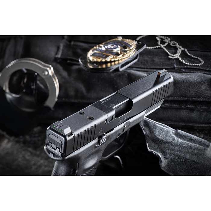 Exclusive to Brownells! The standard-issue night sight set for the FBI and US Marshals! AmeriGlo’s Agent night sight set for Glock® is a major step forward in night sight design that delivers improved visibility and faster sight acquisition in any lighting conditions. These are low-profile, fixed sights designed to meet the daily carry needs of law enforcement officers. AmeriGlo Agent sights for Glock® employ the proven 3-dot configuration preferred by many experienced shooters. The ProGlo style front blade has a vivid green Tritium lamp surrounded by a bright orange outline, so there’s no trouble identifying your front sight under stress. The fixed rear sight has a rounded U-notch flanked by two green Tritium lamps with subdued black outlines. SPECS Drop-in replacements for factory sights Swiss-made self-illuminating Tritium lamps are backed by a 12-year warranty Rear U-notch (all): .165" wide Front sights: .140"" wide Glock® 9mm/.40 S&W/.357 SIG front: .180" high Glock® 10mm/.45 ACP front: .165" high Gen5 sights fit all models of Glock®Gen5 pistols ONLY (front: .200"" high) AmeriGlo Agent night sights are machined from high-grade steel barstock, dehorned to prevent snagging on your clothing during the draw, and given a durable, non-reflective black finish to match your Glock® slide. Even so, the rear sight body is shaped to support one-handed slide racking in an emergency. Fits Gen 1-4 9mm/.40/.380, Gen5 10mm/.45 DISCLAIMER: “GLOCK” is a federally registered trademark of GLOCK, Inc. and is one of many trademarks owned by GLOCK, Inc. or GLOCK Ges.m.b.H. Neither Brownells nor this site are affiliated in any manner with, or otherwise endorsed by, GLOCK, Inc. or GLOCK Ges.m.b.H. The use of “GLOCK” on this page is merely to advertise the sale of GLOCK pistols, parts, or components. For genuine GLOCK, Inc. and GLOCK Ges.m.b.H. products and parts visit www.glock.com.