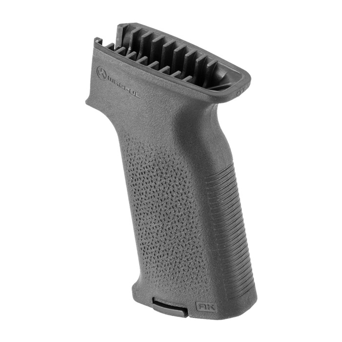 The MOE-K2 AK Grip is a drop-in upgrade for AK47/AK74 pistol grips that offers a more vertical grip angle, but in a full-size grip design. The steeper vertical grip angle improves comfort and control on these shorter LOP rifles that bring the primary hand in closer to the shooter’s body. With an aggressive TSP texture for positive weapon control, compatibility with optional Storage Cores for gear stowage, and a unique backstrap design for proper trigger finger placement, the K2 brings modern styling and ergonomics to the AK platform. Made in U.S.A. FEATURES Drop-in upgrade for AK47/AK74 pistol grips Fits both milled and stamped receivers, including those with grip reinforcement plates More vertical grip angle than typical Kalashnikov designs Unique backstrap shape for proper trigger finger placement Aggressive TSP texture (Trapezoidal Surface Projections) for positive weapon control in all environments Includes a basic grip cap, but accepts optional Storage Cores for customized gear stowage