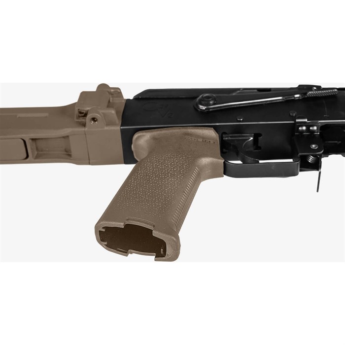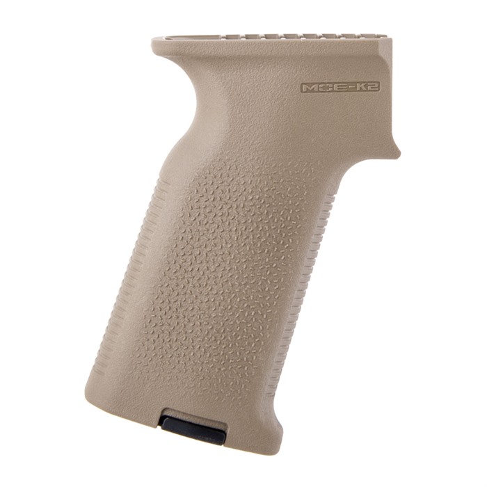 The MOE-K2 AK Grip is a drop-in upgrade for AK47/AK74 pistol grips that offers a more vertical grip angle, but in a full-size grip design. The steeper vertical grip angle improves comfort and control on these shorter LOP rifles that bring the primary hand in closer to the shooter’s body. With an aggressive TSP texture for positive weapon control, compatibility with optional Storage Cores for gear stowage, and a unique backstrap design for proper trigger finger placement, the K2 brings modern styling and ergonomics to the AK platform. Made in U.S.A. FEATURES Drop-in upgrade for AK47/AK74 pistol grips Fits both milled and stamped receivers, including those with grip reinforcement plates More vertical grip angle than typical Kalashnikov designs Unique backstrap shape for proper trigger finger placement Aggressive TSP texture (Trapezoidal Surface Projections) for positive weapon control in all environments Includes a basic grip cap, but accepts optional Storage Cores for customized gear stowage
