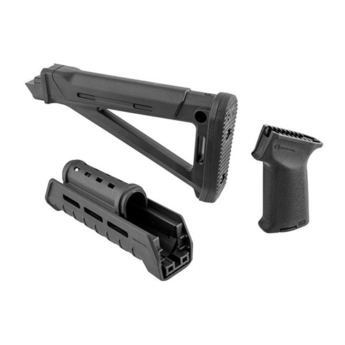 Update your Kalashnikov with these Magpul kits that feature the AK-47/74 MOE stock and handguard along with the Magpul MOE AK grip. Providing Magpul construction and ingenuity to the venerable AK platform, the Magpul MOE AK Stock is an optimized fixed stock for most stamped-receiver rifles. Featuring the unique wedge block fitment of the Zhukov-S Stock, the MOE AK Stock provides internal storage, optimized QD sling swivel placement, a shock absorbing rubber butt-pad for positive placement, and user-selectable snap on Cheek Risers. (Sold Separately) The Magpul MOE AK Hand Guard is a replacement for standard AK pattern rifles WITHOUT a front sling loop on the hand guard retainer. Featuring an extended gripping portion, integrated heat shield, M-LOK mounting capability, and replacement gas tube cover, the MOE AK Hand Guard is an upgrade to any AK pattern rifle. A drop-in upgrade for AK-pattern pistol grips, the MOE AK Grip is compatible with reinforced and un-reinforced receivers. It is designed to improve ergonomics, with an aggressive texture for positive weapon control and one-piece reinforced polymer construction. It is compatible with Magpul Grip Cores for storage customization. *Please note that the Plum kit includes a black version of the MOE AK grip.