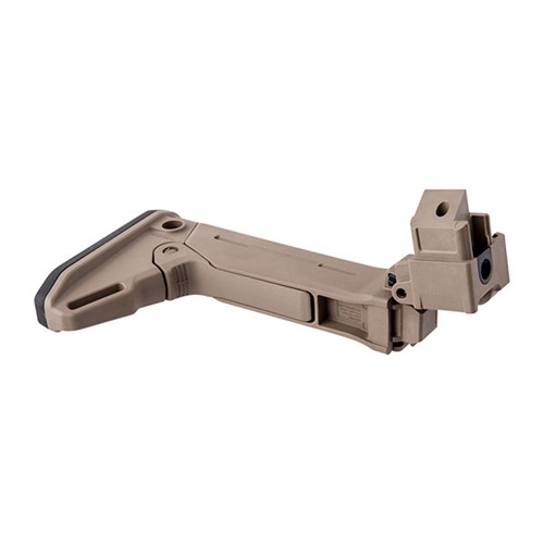 - Per piegare il calcio, premi il pulsante di rilascio e piegalo delicatamente di lato.