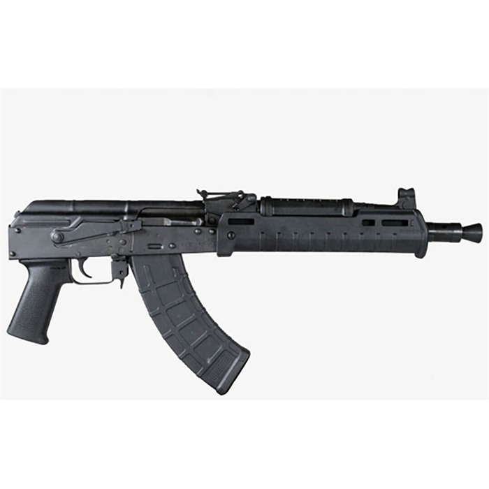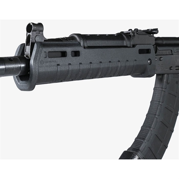 The Zhukov-U Hand Guard is a shortened version of Magpul's original Zhukov hand guard for use on short-barreled AK rifles and pistols. Like the original, the Zhukhov-U Hand Guard replaces the small, skinny wood factory guard to give you a large, comfortable gripping surface thats compatible with modern shooting techniques. An internal aluminum chassis clamps directly to the barrel for a solid flex-free installation and excellent barrel heat dispersion, while the comfortable injection molded exterior gives superior ergonomics. The Zhukov-U Hand Guard is compatible with the Ultimak gas tube rail for optics. It also allows you to retain use of the military-issue cleaning rod (unlike the original Zhukov). 1.5" shorter than the standard Zhukov hand guard Fits stamped and milled AK-47 / AK-74 rifles with standard-length gas systems Optimized for short-barreled rifles such as AK-102, AK-104 & AK-105 M-LOK slots for accessory attachment at the 3, 6, and 9 oclock positions Vented gas tube cover Counts as one US compliance part under 18 U.S.C. section 922(r) Installation requires permanent removal of the factory handguard retaining cap and forward sling mount The Zhukov-U Hand Guard can be mounted on rifles with full-length barrels, if you prefer a smaller hand guard. Due to the wide range of tolerances typical of AK-pattern rifles, minor additional fitting may be required.