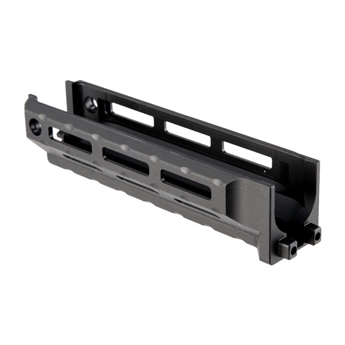 The AK Drop-In Handguards M-LOK from Midwest Industries offers a drop-in handguard solution for multiple AK rifle models. The handguards are available in three configurations; the 6” universal for standard stamped AK pattern rifles, the 6.5” Yugo M70, and the 6” Yugo M92/M85. The Midwest Industries AK Drop-In Handguards M-LOK are constructed from 6061 aluminum with a black hardcoat anodized finish. The 6” variants weight just 4.5 ounces, while the 6.5” M70 configuration weighs 4.8 ounces. Compatible with railed gas tubes 100% made in the USA 922R Compliant The AK Drop-In Handguards M-LOK offer a solid lockup without requiring the firearm to be permanently altered. Minor fitting allows the handguards to be installed in just a matter of minutes, so you are ready to outfit that AK-platform rifle with all the accessories you want or need, courtesy of the three sides of useable M-LOK slots and two anti-rotation QD sling swivel sockets.