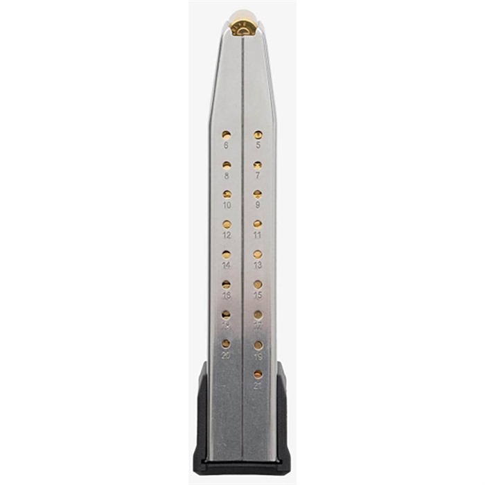 The AMAG 17 SG9 is a 17-round SIG 9mm Handgun Magazine featuring a stainless-steel body with polymer sub-components. Magpul SIG magazines come with many of their standard proven features, including a high-visibility, controlled-tilt follower, stainless-steel spring, flared floorplate that’s easily removable for cleaning and routine maintenance, paint-pen dot matrix for magazine marking, and capacity-indicator windows which begin at five (5) rounds, and continue along the spine of the magazine in one (1)-round increments. Like all Magpul’s polymer products, the AMAG 17 SG9 is designed, engineered, and manufactured only by Magpul for absolute reliability every time you use them. Corrosion-resistant, stainless-steel magazine body High-visibility, controlled-tilt follower Stainless-steel spring for longevity and durability Flared, easily removeable floorplate for easy maintenance Capacity indicators starting at 5 rounds, continue in 1-round intervals Paint-pen dot matrix Compatible with all P320 / M17 frame sizes COMPATIBILITY The AMAG 17 SG9 is compatible with full-size, compact, and sub-compact variants of the P320/ M17/ M18 platform.