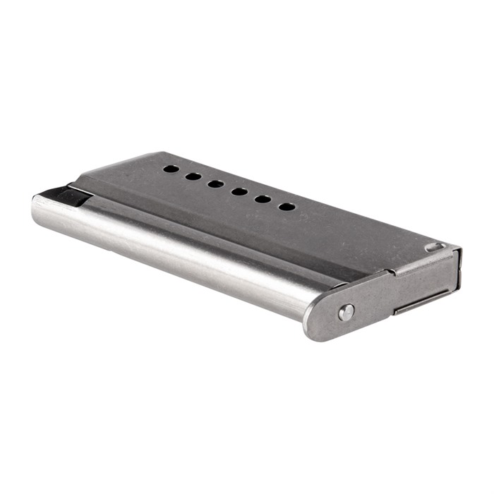 Are you down to your last good mag for your AMT AutoMag III .30 Carbine pistol? Leery about shooting the gun because when that mag goes, it's out of action? Good news! Try these brand-new reproduction 8-round magazines and spend your time throwing .30 Carbine lead downrange from your AMT AutoMag III instead fretting about clearing jams. Engineered for proper fit just like the originals, these replacement AutoMag mags from International Armament deliver reliable, consistent feeding, just like the ones that came with your pistol when it was new. And with six handy witness holes on the side, you can easily distinguish loaded mags from those needing a refill. Full 8-round capacity Fits AutoMag III chambered in .30 Carbine ONLY Newly manufactured - not refurbs or old stock Durable, black polymer follower Stainless steel body, base plate, and retainer Fits and functions just like the originals Grab some of these International Armament AMT AutoMag III replacement magazines and keep this iconic handgun ready for plenty of action on the firing line.