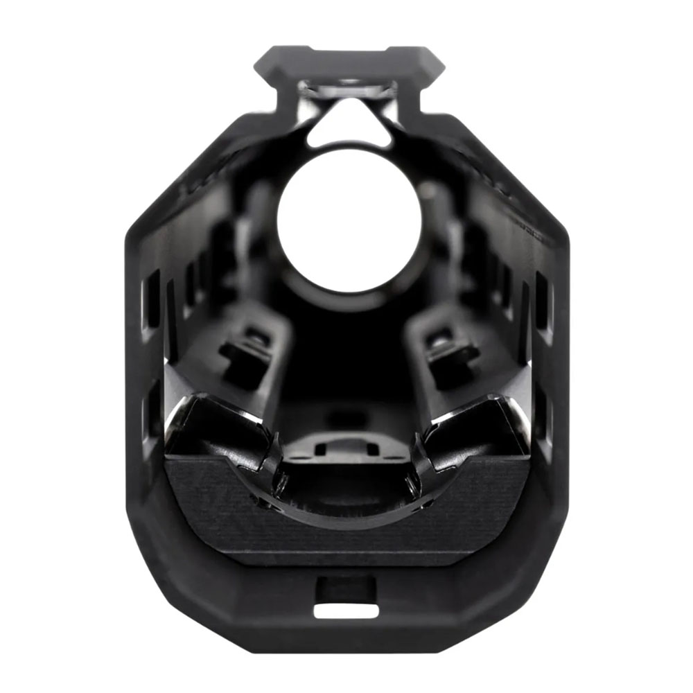 Il bipode BLK LBL presenta un design innovativo che consente al fucile di posizionarsi 'dentro' il bipode, piuttosto che 'sopra' di esso. Questo design posiziona il centro di rotazione del bipode in modo efficace al centro della canna, rendendolo intrinsecamente più stabile.