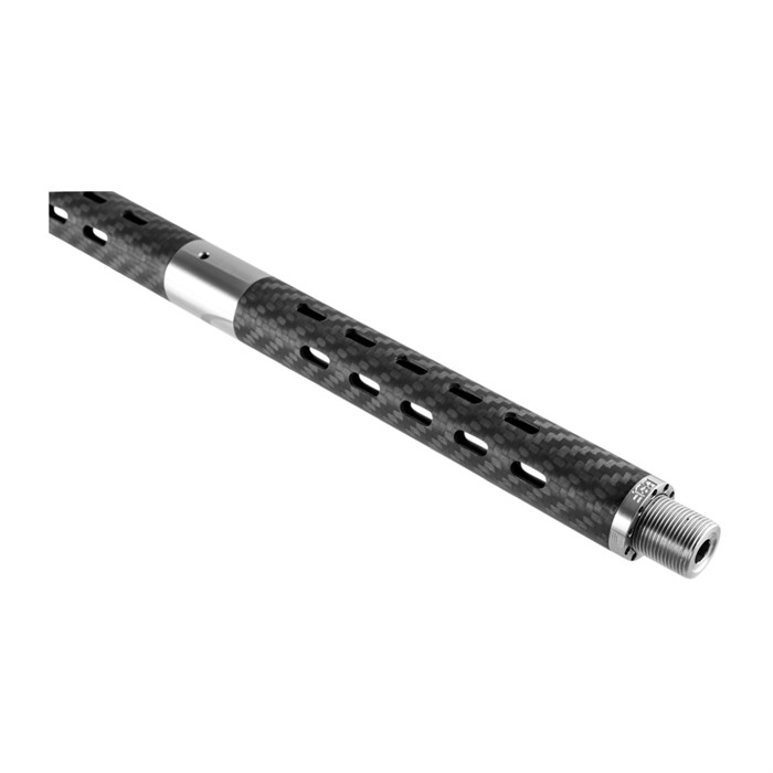 BSF 6.5 Grendel Carbon Fiber AR-15 Barrels have a match-grade 416R stainless steel inner core sleeved in roll-wrapped carbon fiber that provides superb rigidity, weight savings, and excellent cooling. Three times stronger than steel, the carbon fiber sleeve puts an air pocket between the barrel and carbon, allowing air to flow around the stainless steel inner barrel, further enhancing cooling. Vent holes in the carbon fiber sleeve lets that internal heat escape, expediting barrel cooling even more. In the end, BSF 6.5 Grendel Carbon Fiber AR-15 Barrels stay cool enough you can hold them with your bare hands, even after running 60 consecutive rounds down them! Match grade inner barrel of double stress-relieved 416R stainless steel .875" O.D. bull barrel external contour 95% of the carbon fiber wrap does not touch the inner barrel for plenty of heat dissipation 1"-8 rifling Requires a rifle-length gas tube (available separately) By using this sleeve system, the BSF 6.5 Grendel Carbon Fiber AR-15 Barrels are able to maintain remarkable stiffness and strength while keeping the barrel extremely lightweight.