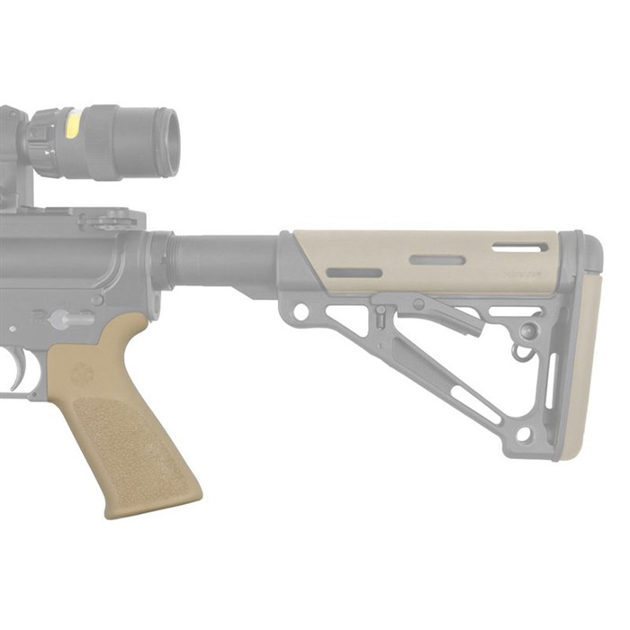 OVERMOLDED RUBBER BEAVERTAIL GRIP FOR AR-15/M16 This AR-15 pistol grip from Hogue features their classic soft rubber overmold over a fiberglass construction. Features a high beavertail, no finger groves, and a textured finish. FEATURES Gentle palm swells fit comfortably in hand Textured with Hogue's famous Cobblestone pattern for an efficient non-slip, non-irritating stippled grip Beavertail™ cushions the hand on recoil and offers increased hand comfort higher on the frame Made from long-lasting, durable, thermoplastic elastomer that ages gracefully for years of service Virtually impervious to all oils and solvents associated with firearms NOTE: Does not include screw, washer or plug. SPECS Precision fit for AR-15 / M16 rifles Material: OverMolded® rubber without finger grooves Texture: Cobblestone™ Color: Black Weight: 2.6 oz
