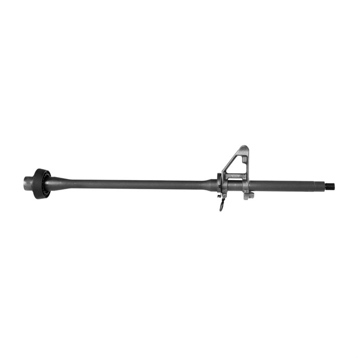 Brownells Government Barrel Assemblies – Chrome Lined and Individually Inspected The Brownells Government Barrel Assemblies are manufactured by a US Government Contractor for M4 barrels, and held to exacting standards. These barrels all feature a hard chrome bore, applied over button rifling. Each barrel is High Pressure Tested, followed by Magnetic Particle Inspection & Gauging to ensure there are absolutely zero imperfections. Assemblies are as ready-to-install as possible, with slip ring assembly, F-Marked front sight base and handguard cap pre-installed. Handguard caps are appropriate for the barrel length, with M4 Carbine assemblies featuring a round cap, and the rifle length featuring the proper triangle. Barrel material is 4150 chrome moly steel. 5.56x45mm chamber and 1-7 twist will ensure acceptance and desired performance with 62 grain and greater bullets. Barrels are all marked: “5.56x45mm NATO MFR 12238 MP HP 1-7”.