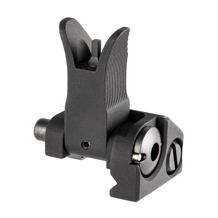 Le robuste "orecchie" protettive schermano i post e le aperture dagli impatti. I mirini anteriori si fissano al rail degli accessori del handguard sulla stessa pianura del flattop e sono alti solo ½" quando ripiegati. Tutti i modelli hanno un post di tipo M4 che è regolabile in elevazione in incrementi di ½ MOA.