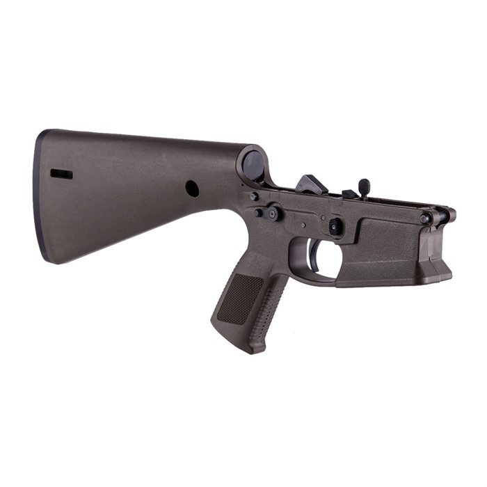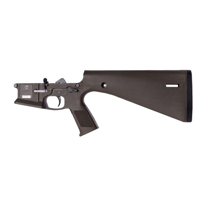What makes this lower different than its counterparts? The answer is simple… the KE Arms KP-15 is a monolithic polymer AR-15 style lower receiver made from injection molded, 30% glass-filled nylon. Its unique design incorporates the buffer tube, pistol grip, trigger and a 13-inch (LOP) buttstock into the receiver as integral components. The result is an affordably priced, lightweight lower receiver. The KE Arms KP-15 lower receiver uses a carbine buffer and spring. The take down and pivot pins have built-in detents, which increases durability by eliminating the spring and detent holes. The buffer detent (should you choose to use it) is held in place with a 5/64” roll pin. The hammer pin area is wider for durability; standard AR-15 hammer pins can still be used, though the KE Arms longer hammer pin is recommended for customers preferring a flush pin for aesthetic reasons. The safety selector spring and detent have been designed to load from the top, then the selector is slid over them. (Standard selectors can work but removing them can be particularly difficult. KE Arms recommends the use of their designated mil-spec selector or ambi selector to make removal easier. Follow the manufacturer’s assembly guide for further instructions.) Weight: 1.704 lbs. Compatible with all Mil-Spec fire control groups Compatible with cassette style match triggers Flared magwell Available in black and flat dark earth MLOK Slots at rear of stock for sling attachment Pre-drilled in front for QD socket inserts Uses a standard bolt catch. Cannot accept the PDQ lever. The PDQ lever is exclusive to the WWSD complete rifle. Do NOT use anything other than standard carbine buffers and round springs or the JP SCSS in the KP-15. WARNING!: This item is legally classified as a receiver. You Must be 21 years old to purchase this item and a resident of the same state your transferring dealer is licensed in. The KE Arms KP-15 is compatible with standard AR-15 uppers in calibers including .223/5.56mm NATO, .300 Blackout, 6.5mm Grendel and 6.8mm SPC. The lower receiver is also compatible with 9mm blowback systems, when used with a minimum buffer weight of 5.4oz (carbine). Failure to use a minimum buffer weight of 5.4oz can damage the lower. CERAKOTE: If you intend to Cerakote your KP-15 the manufacturer recommends the bake should be done at low temperatures (<190 Degrees F) and with an upper in place to prevent warping. WARRANTY: The KE Arms KP-15 has a lifetime warranty for normal use. If the receiver breaks through misuse or neglect, KE Arms will replace it ONCE for $65.00. NOTE: Not recommended for .458 SOCOM, .50 Beowulf or .50 BMG. Please contact KE Arms if you intend to register your KP-15 lower receiver as an NFA weapon.
