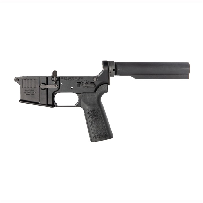 Brownells has worked with Sons of Liberty Gun Works to offer these AR-15 ‘Semi-Complete’ Lower Receivers. What do we mean by ‘Semi-Complete’? Well we know that our customers want a rugged, dependable lower receiver for their build and with this lower receiver being built in house by the SOLGW gunsmiths you get just that. But we also know that there are two items more likely to be swapped out from personal preference on a lower receiver than any other, and those are the stock and trigger. With the SOLGW Semi-Complete Lower Receiver we’ve left those two items out of the build, meaning you’re not paying for the stock and trigger you don’t want and can get exactly the stock and trigger you do. The Sons of Liberty Gun Works AR-15 lower receivers are built from mil-spec 7075-T6 forgings from the lead forge in the U.S. The contour is fully machined leaving no flash marks from the forging. SOLGW takes extra care when machining our lower receivers resulting in tolerances that are tighter and fits that are better than other lower receivers. They use mil-spec Matte black hard-coat anodized Mil 8625 Type 3 Class 2 finish. Complete with Carbine Buffer Tuber Assembly, Take Down Pins, B5 P23 Grip, Bolt and Magazine Releases Installed. Lower receivers are available with either the Rebellious Stripes or Angry Patriot roll marks.