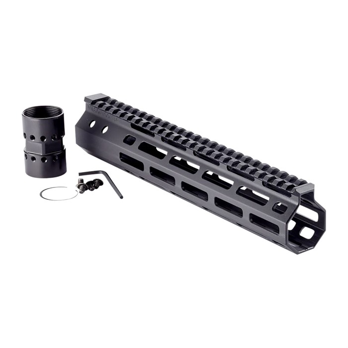 The best of both worlds-Wilson Combat’s lightweight but rock solid T.R.I.M rails for AR pattern rifles have been updated with the Magpul M-Lok accessory attachment system. Available in multiple lengths, these new AR handguard rails are among the ultimate in high quality, user-installed modularity. Their precision machined three, six, and nine O’Clock M-Lok positions enable fast, easy mounting of multiple shooting accessories popular across the shooting industry. In addition to a lighter, sleeker rail profile, the barrel nut design was retained from the original T.R.I.M rail to make it simple for users to easily swap the older T.R.I.M rail design with the M-Lok version. The T.R.I.M. (Tactical Rail Interface, Modular) AR rail has been designed by the Wilson Combat engineering team to be among the lightest, strongest and most versatile compact free-floating rail systems on the market. Machined from high-strength 6005A-T5 aircraft aluminum with a Mil-Spec hard anodized finish, the T.R.I.M. rail handguard / interface and its robust, anti-rotational mounting system won't sacrifice strength, stability or accuracy over bulkier designs. The oversize and tough nitrocarburized 4130 steel barrel attachment nut reduces heat transfer and the ergonomic handguard design offers a sleek, non-abrasive platform for comfortable dynamic shooting. Available in 9.3” or 13.8”. Light, Strong and Compact Free-Floating Rail Design Machined from 6005A-T5 Aluminum Extrusion Mil-Spec Hard Anodized Black Finish Simple, 5-Minute Installation with Common Hand Tools Easily Removed or Replaced in the Field 1.47" Internal Diameter is Compatible with most Low-Profile Gas Blocks Overall weight with attachments: 9.4 oz./11.6oz Note: The hardened screws used in this handguard are tapered at the base to provide a flush, smooth fit. It is important that during initial installation that a small amount of grease is placed on the tapered shoulder of the screw to prevent screw galling against the softer rail. If a screw seizes and becomes immobile do not attempt removal, please contact Wilson Combat customer service.