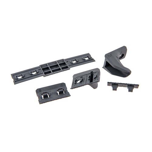 Questo kit consente all'utente di configurare il proprio set come desidera. Inoltre, è incluso un M-LOK Hand Stop MOE Adapter per l'uso con Magpul polymer M-LOK Hand Guards o Forends, così come con altre rotaie a profilo più ampio.