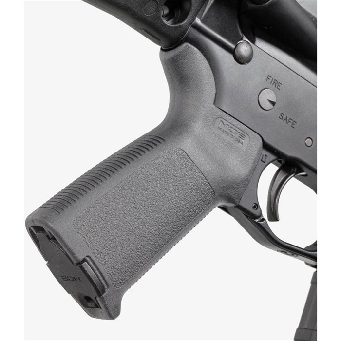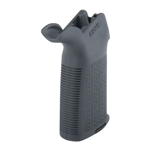 Magpul Original Equipment (MOE) grip is a durable, economical, easy-to-install replacement for factory pistol grip that gives the shooter a solid, secure grasp. Rigid, fully supported one-piece construction from the same reinforced, high-impact polymer as the MIAD grip, with crackle texture on the sides and deep horizontal grooves on frontstrap and backstrap. Curved beavertail similar to the MIAD B2 insert fills the grip-to-receiver junction to help you maintain a comfortable hold and protect the web of your hand during sustained firing. Compatible with Magpul MIAD Grip Cores and Enhanced Aluminum Triggerguard, available separately.