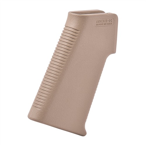 Progettato come un upgrade plug-and-play per il grip standard AR15/M4, il MOE-K Grip offre un design estremamente basso e compatto con un angolo di presa più ripido rispetto agli stili più tradizionali. L'angolo di presa più verticale è ottimizzato per l'uso su configurazioni PDW (Personal Defense Weapon) e migliora il comfort e il controllo su fucili con lunghezza di corsa corta che avvicinano la mano principale al corpo dello sparatore.