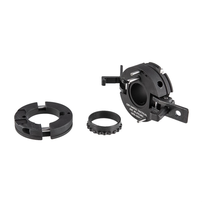 The Cry Havoc Tactical QRB (Quick Release Barrel) 2 Pin Upper Receiver Takedown Kit for AR-15 style rifles or pistols. While the QRB was primarily designed for the civilian market, non-civilian applications range from the Air Force using the QRB on the Air Crew Survival Weapon (GAU-5A) for ALL Fighters and Bombers, Motorcycle Police who did not have room for a standard AR-15/M4, to Operators in areas where an exposed AR-15/M4 might bring unwanted attention. In these and other cases, where there is a need for an AR-15/M4, the QRB now makes it possible to fit a rifle into a tight space but still have a usable barrel length for increased velocity. Assemble and Fire in seconds, even in low light. Able to KEEP strong hand on grip - Nothing to Depress or twist with strong hand. Use gross motor skills to assemble due to two-piece gas system. No lining up tiny gas access hole with gas tube first Able to use a wide range of Free Float Hand Guards for the attachment of Back-up Iron Sights and accessories. Super-fast barrel and upper cleaning. The QRB can retain POA/POI as the barrel still ""head-spaces"" off the stock positions (our tests have shown accuracy retained to less than 1 MOA of original rifle setup). With the purchase of an additional Barrel Lock Plate, switching to a different barrel length or caliber, like the 300 Blackout, takes just seconds. Proudly made in the USA The QRB Kit can only be used on Barrels with a maximum outside diameter of 0.985"" and Free Float Hand Guards with a maximum width of 2.0"" Also the QRB will add 1.5"" to the length of your free-floating hand guard. To purchase the proper kit simply selection the gas tube option that matches up with your barrels gas system length. A kit designed for pistol caliber AR’s that does not include a gas tube is available as well. Includes Barrel Plate, Receiver Plate, Star Nut, and Receiver Plate alignment Pin.