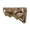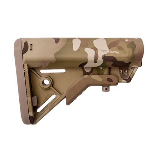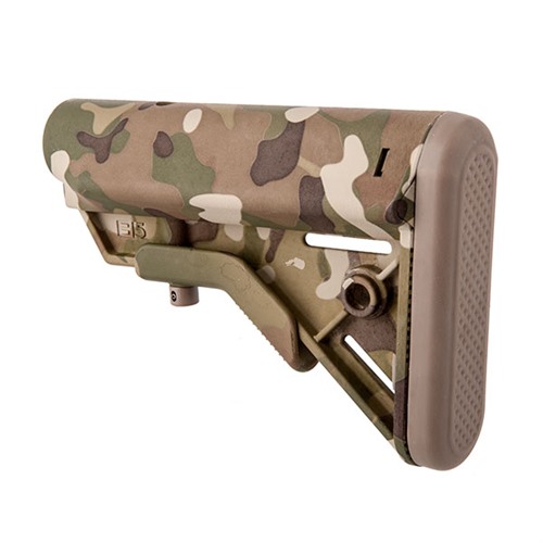 B5 SYSTEMS BRAVO COLLAPSIBLE MIL-SPEC STOCK FOR AR-15 Building upon the success of the B5 Systems Enhanced SOPMOD, B5 has taken the features end users demand; offering them in a lighter, more compact, and stronger buttstock. The Bravo stock maintains the SOPMOD cheek weld, one piece anti-rotation quick disconnect sling mount, non-slip cushioned buttpad, and improved sure grip stock latch. The Bravo omits the storage capability of the SOPMOD to provide a slimmer profile and angles the rear of the stock ensuring quick and consistent stock placement against the shoulder and cheek. Made of Mil-Spec materials and finishes. Currently employed by the U.S. military, this reinforced polymer stock fits M4-type receiver extensions and offers an improved cheekweld designed for increased comfort and consistency. Streamlined contours resist snagging on clothing, equipment, or vegetation to aid in safe and stealthy operation. Sure-Grip stock latch ensures convenient and intuitive length-of-pull adjustment, while the anti-slip rubber recoil pad secures the weapon to the operator’s shoulder. Features a black, stainless steel QD swivel mount and two molded 1¼" wide sling slots. FEATURES Ergonomic Cheek Weld Color-Matched Steel Hardware Fixed Sling Mounts and Steel Anti-Rotational QD Mounts Cushioned Non-slip Buttpad with Built in M4 Multi-Tasker® Tool Holder (tool sold separately) Sure Grip Stock Latch Made of MIL-SPEC Materials and Finishes Fits MIL-SPEC Carbine Receiver Extensions SPECS Weight: 9.3 oz Length: 7.2 in Width: 2 in Height: 4.9 Black and Tan models are TACOM approved and on the Additional Authorization List (AAL) for the M4/M4A1. Black NSN: 1005-01-706-2373 Flat Dark Earth NSN: 1005-01-706-2510